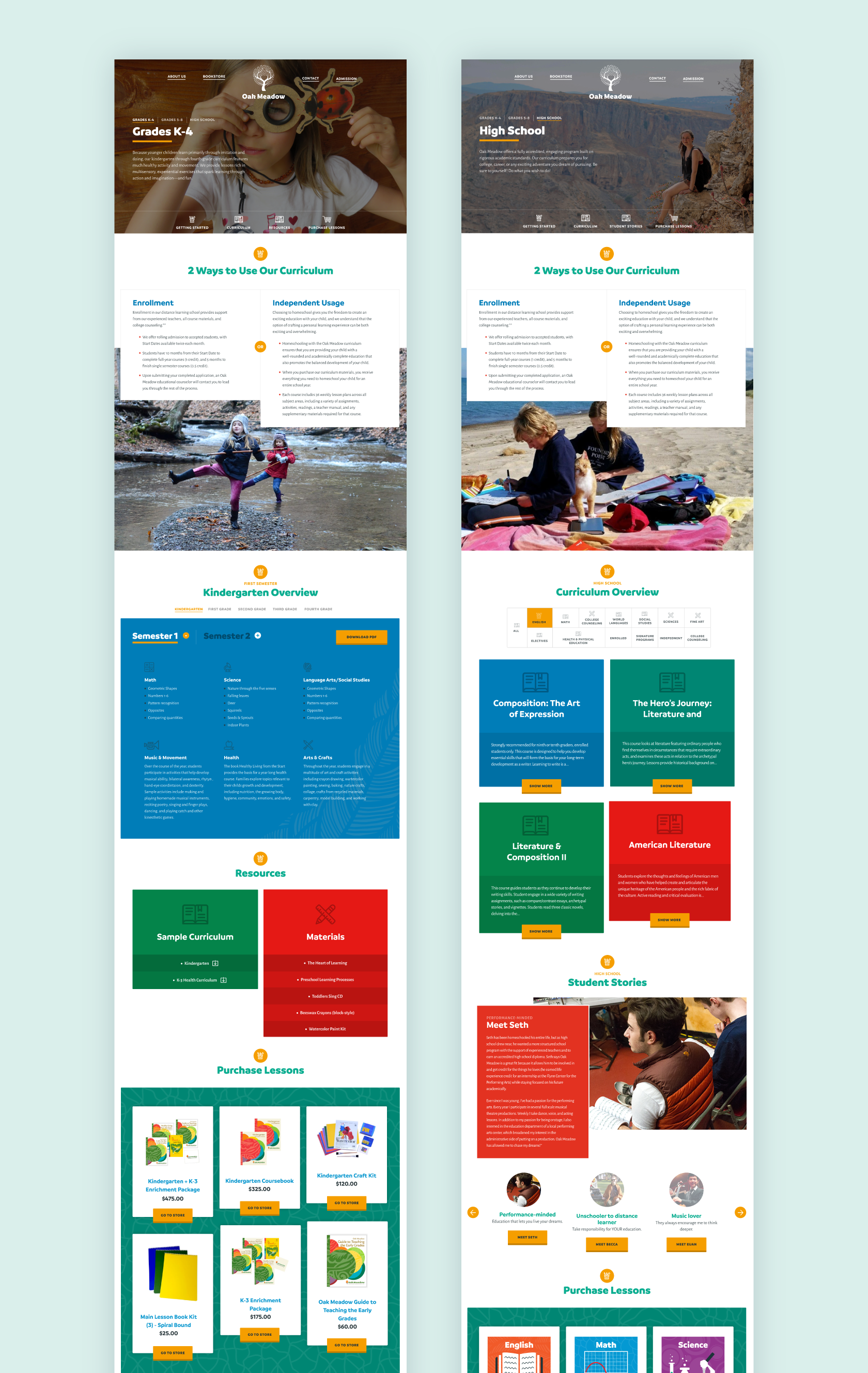 As part of the Gravity Switch agency, my initial scope of work for Oak Meadow involved creating a new logo. However, early in the process, we showed them the value and efficiency of doing a more robust rebrand up front, which culminated in a user-centric redesign of their website.