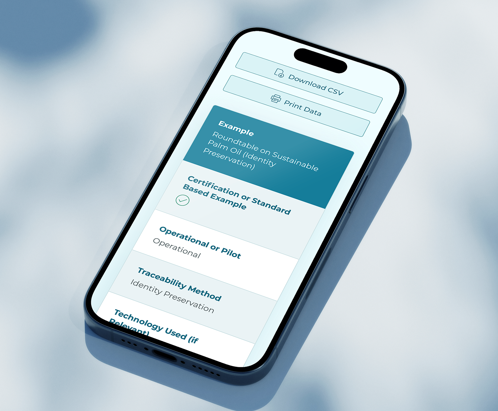 Traceability Technology list on mobile