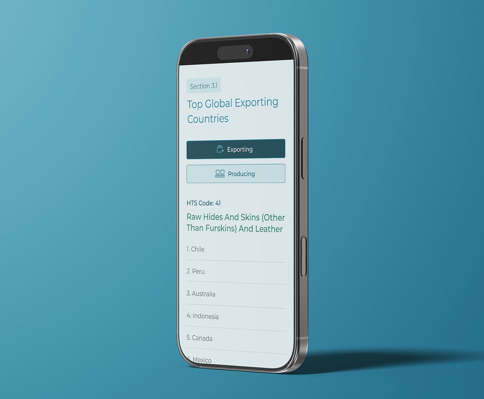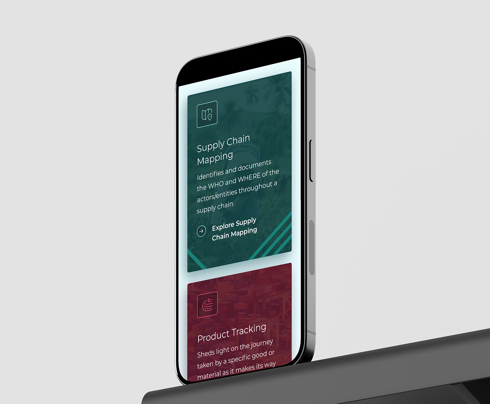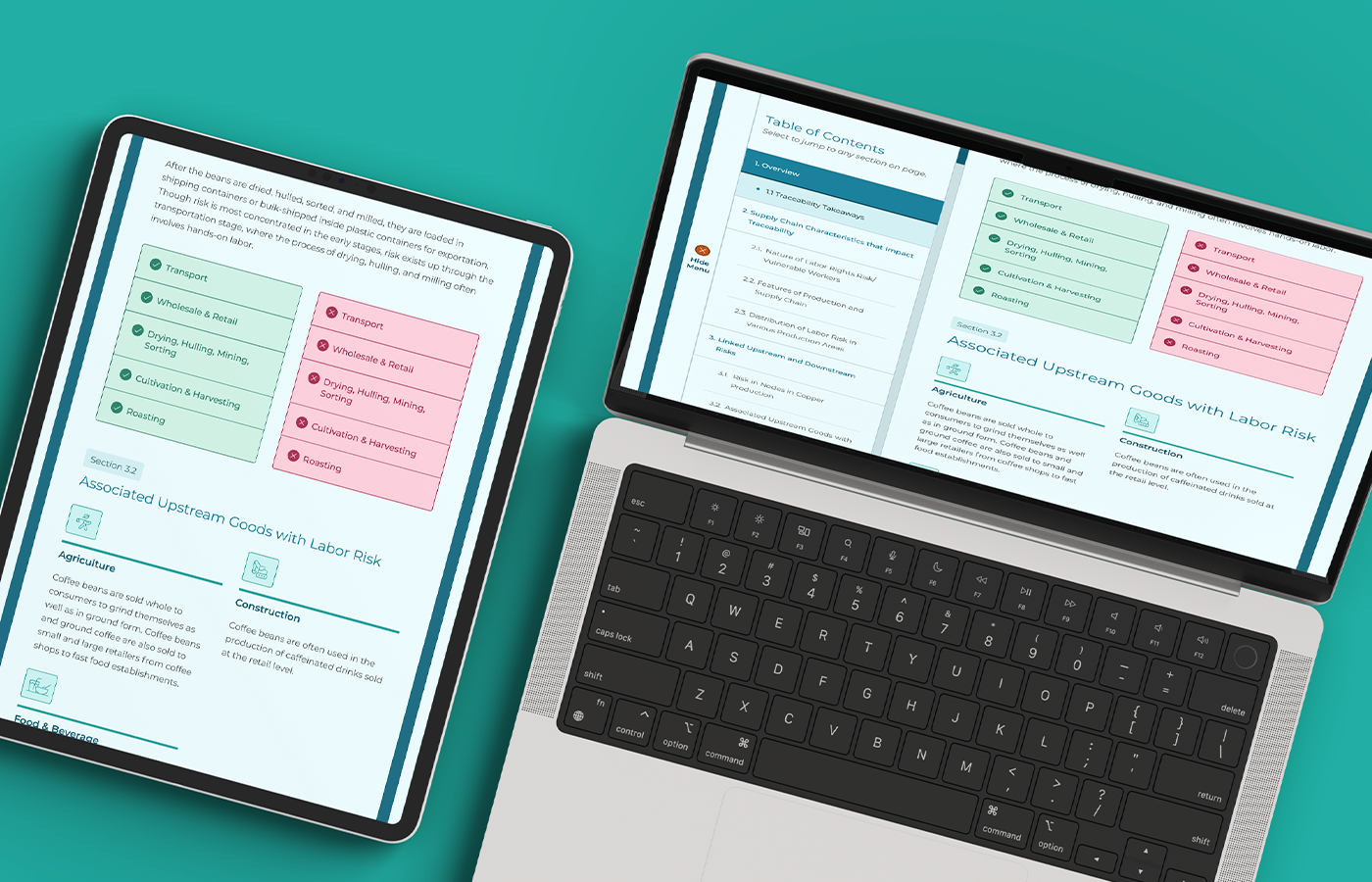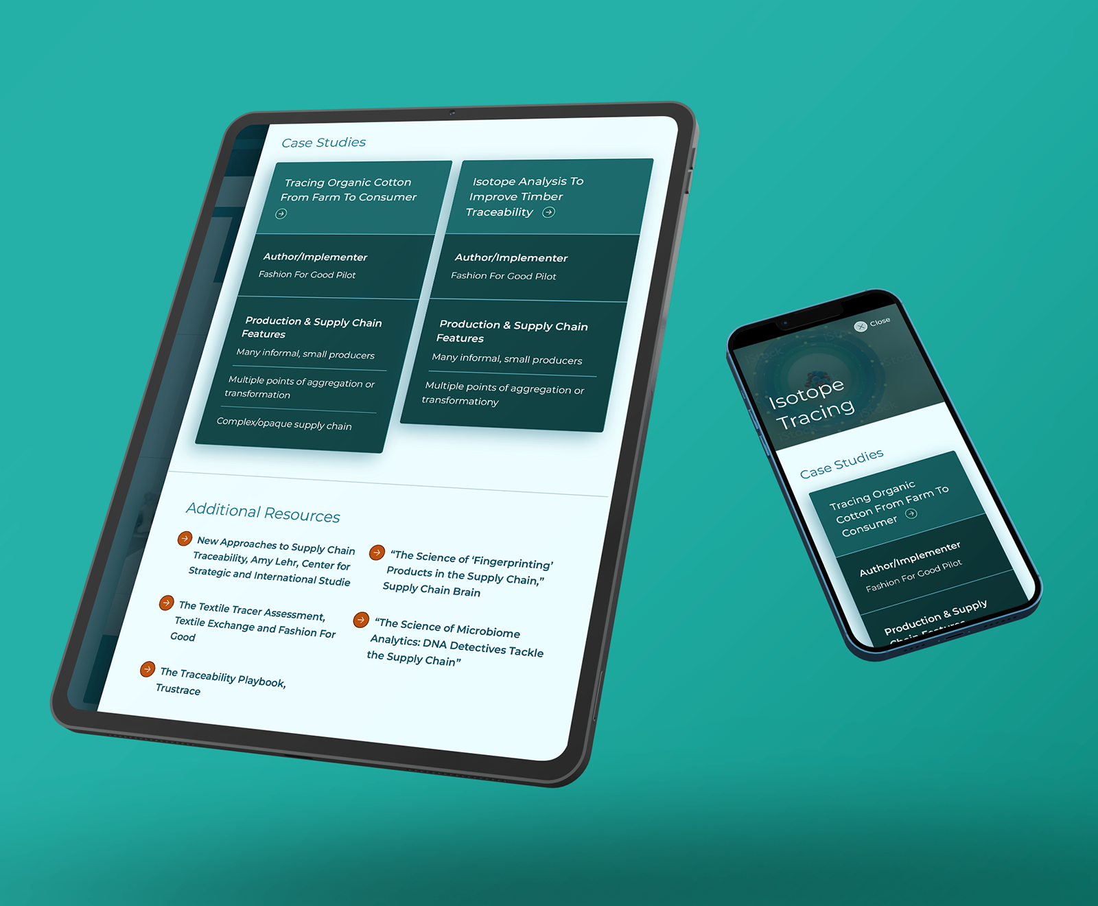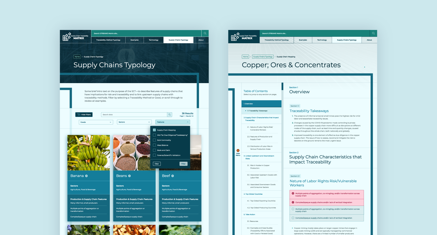 Supply Chains Typology list on desktop (left); profiled product from the list on desktop (right);
